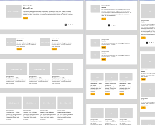 Teaser-Elemente gibt es in mehreren Varianten jeweils statisch oder als Slider. In Containern platziert, können sie unterschiedliche Hintergründe haben.